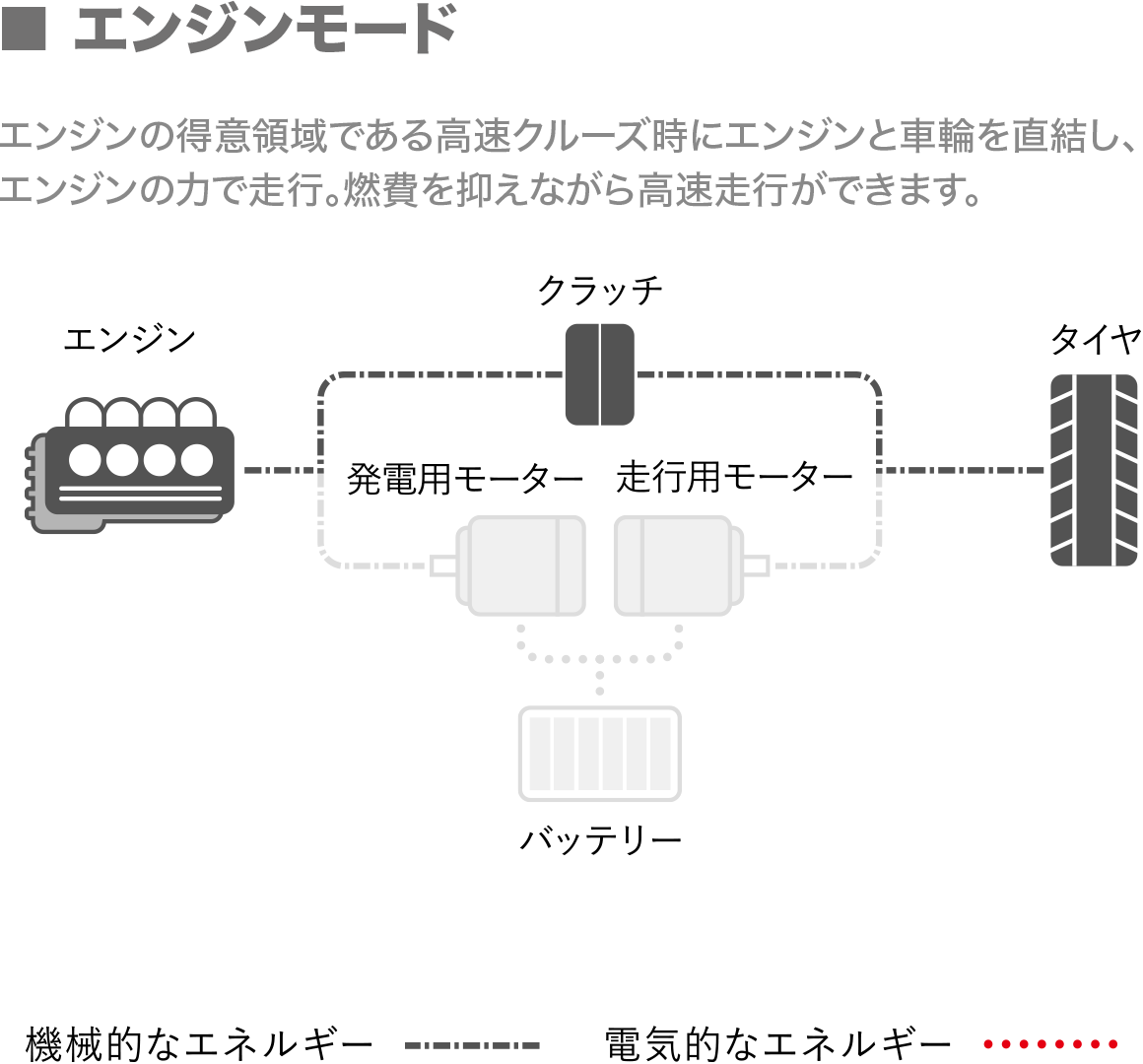 寒冷時、モーターのみで走るEVモードをより早く開始させることで、燃費を向上させます。