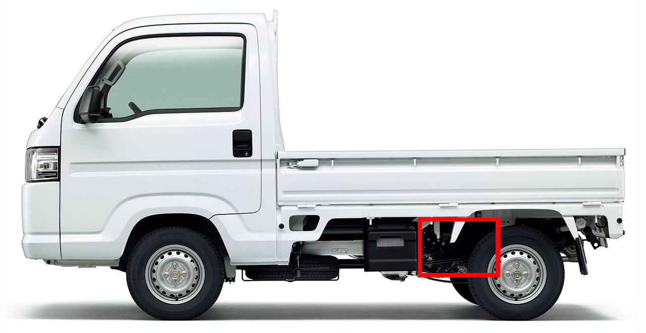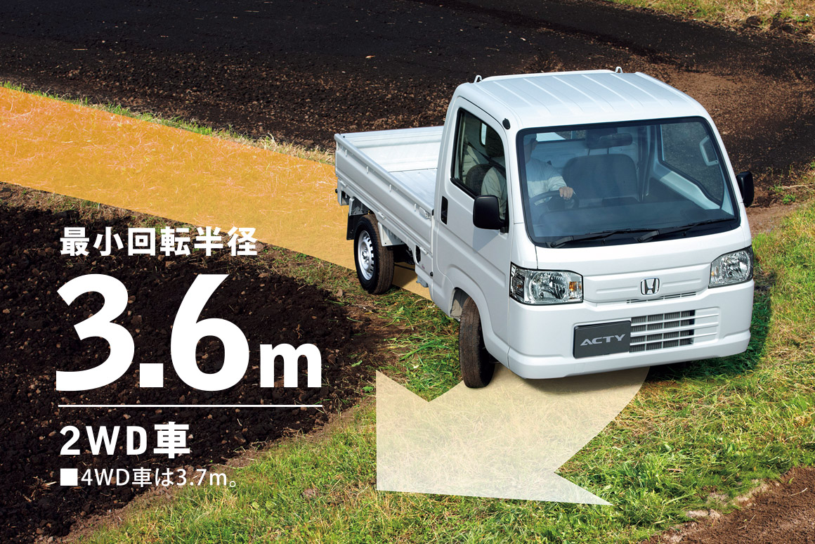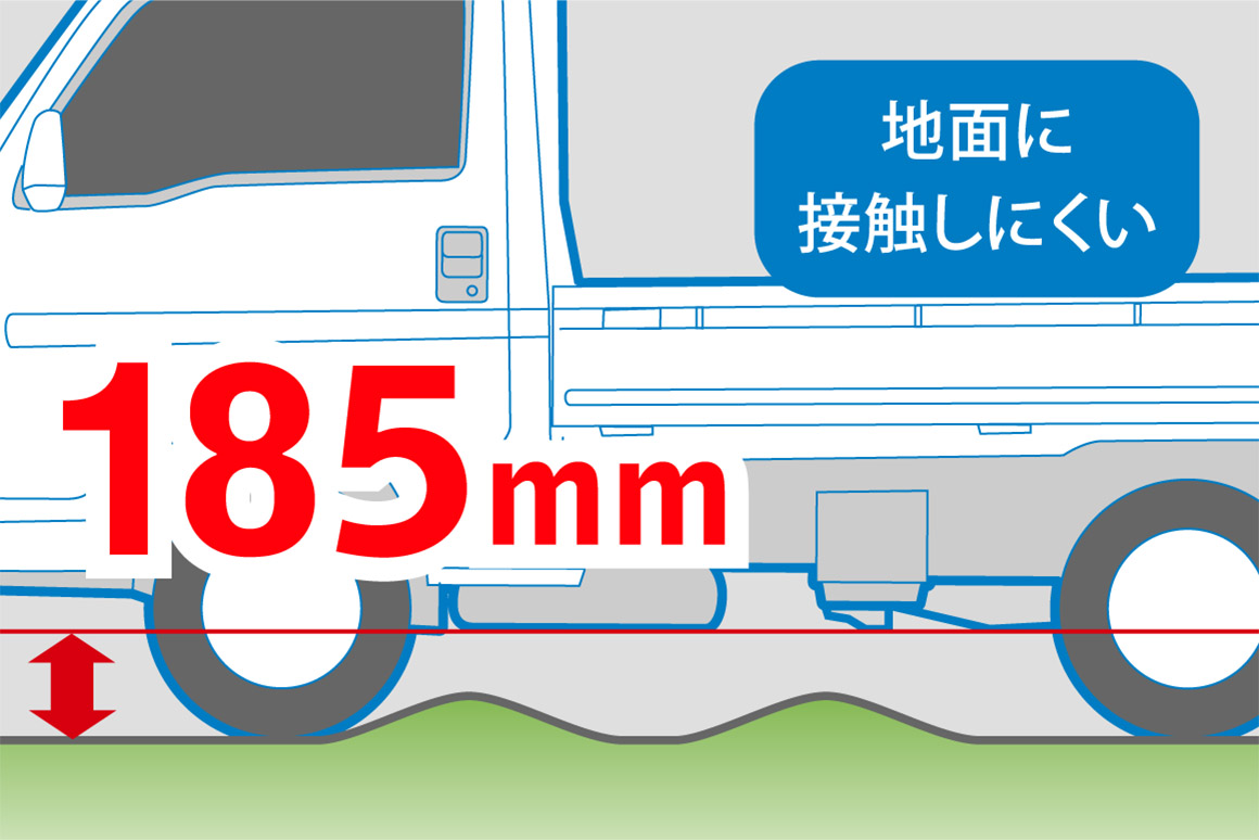 エンジンを前後の車軸の間に置くHonda独自のMR(ミッドシップ・リアドライブ)方式。空荷時でも駆動輪である後輪にしっかりと荷重がかかるので、安定した走りを実現すると同時に、エンジンとキャビンが離れているため、室内の静粛性にも貢献。4WDとの相性も抜群です。