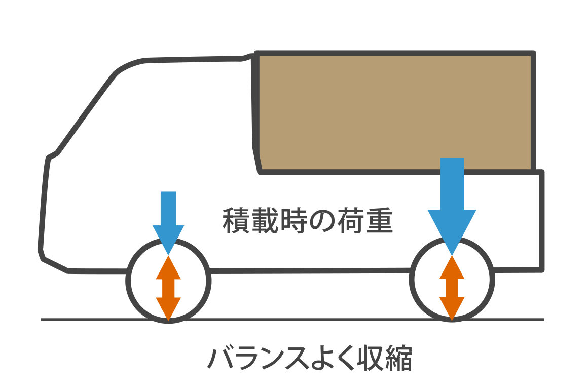 荷物の量や重さで荷重バランスが変わっても、高い走行安定性を確保。高い路面追従性と快適な乗り心地も実現しています。