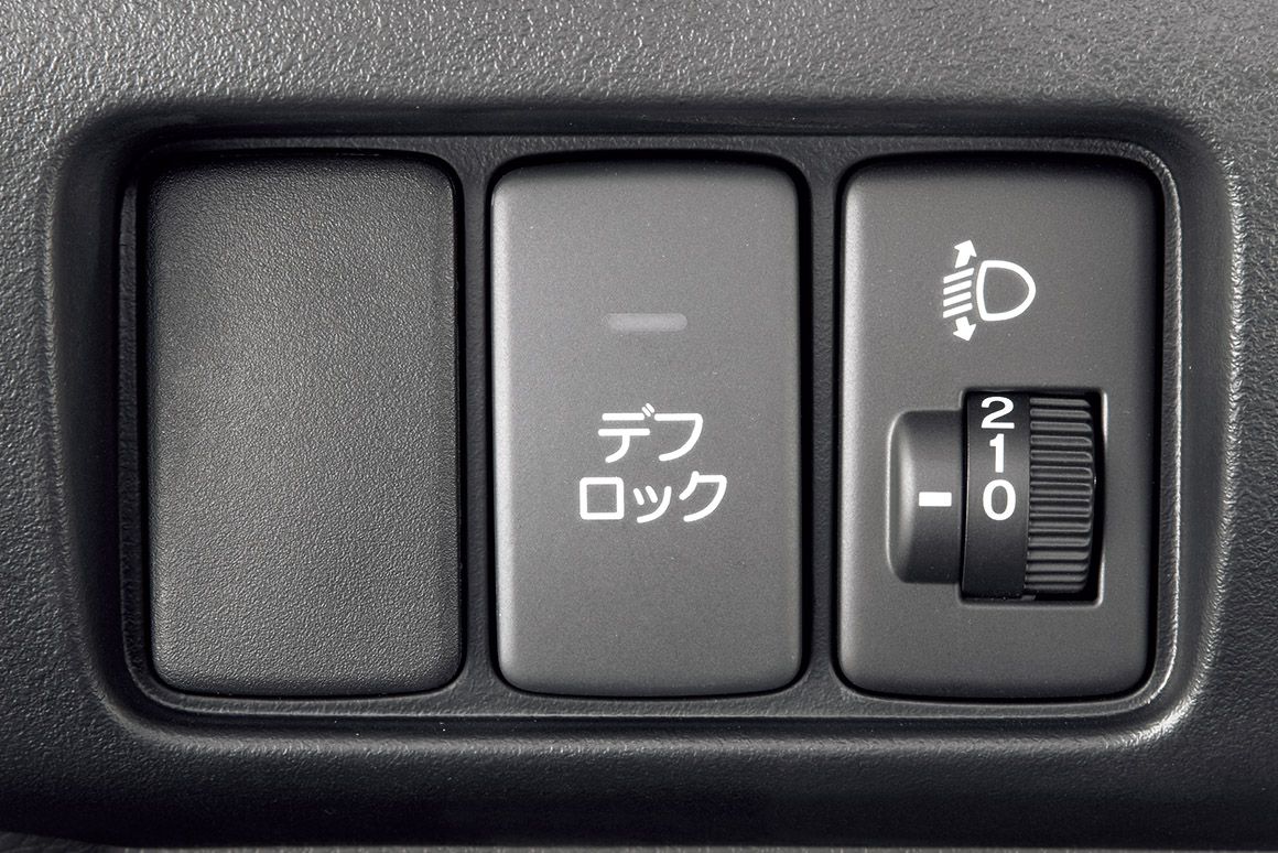ぬかるみや雪道、砂地などで車輪が空転して動けなくなった時、デフロックスイッチをONにすると、駆動力を左右の後輪に等しく伝え、脱出しやすくします。(ウルトラロー/ウルトラリバース・ギア使用時のみ作動します。)
