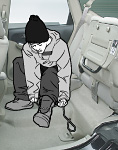 シート肩口のフックを起こしてシートバックを前に倒すだけ。