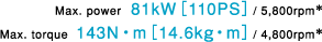 高回転までスムーズに回る爽快感が味わえます。また心地よい走りとともに低燃費も両立。