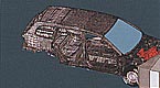 フロントフレームを蛇腹状にきれいにつぶしていくことで衝撃を吸収、各フロアフレームに効率よく分散させている。