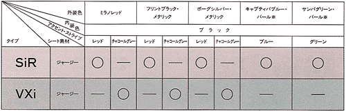 ■内外装色組み合わせ表