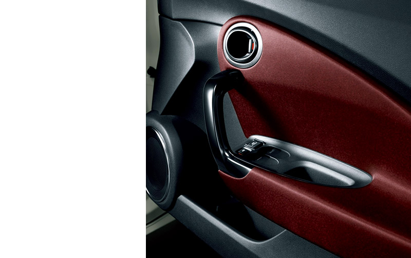 パネルはドライバーの意識を進行方向へ導くような造形とし、運転に集中できる空間としている。