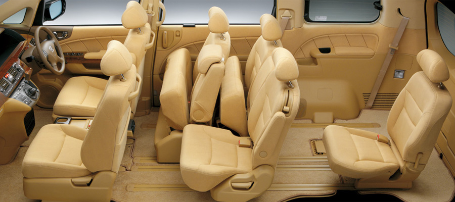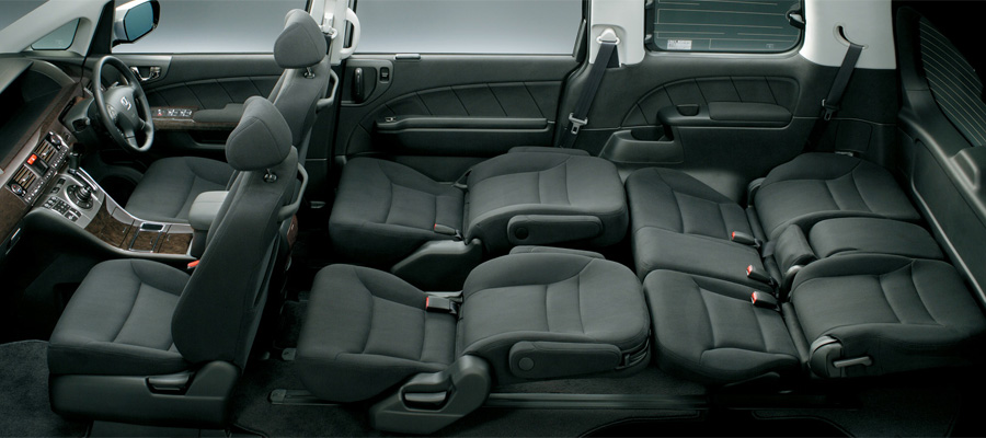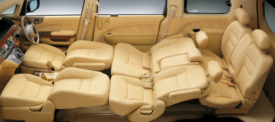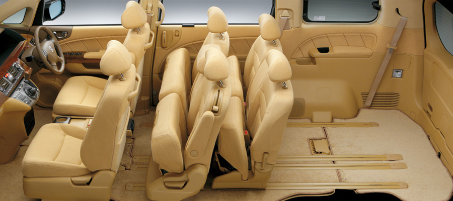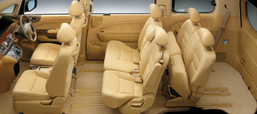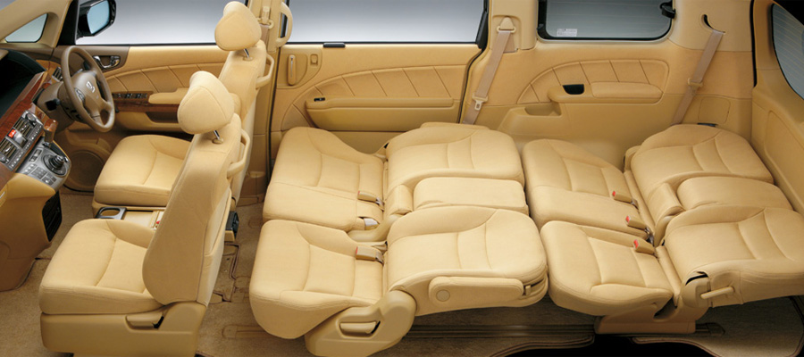 くつろげるキャビンであること、乗り降りがしやすいことをポイントに開発されたエリシオンの居住空間は、フラットなフロア構造をベースに、座面の広さやクッション厚もたっぷりとしたシートを3列に配置。2列目には3人がけタイプに加え、左右独立のキャプテンシートも設定しています。いずれもワンモーションウォークイン機構を採用し、3列目シートへのアプローチも快適。さらにシート表皮をはじめ、インテリア素材のクオリティーにもこだわっています。