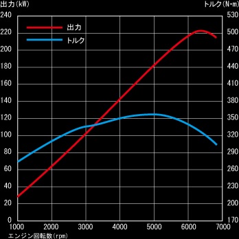■最高出力(ネット値) 221kW[300PS]/ 6,200rpm(FF車) *装着するメーカーオプションによっては、燃料消費率は8.1km/Lとなるものがあります。 |