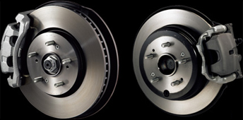 制動力としなやかなコントロール性を両立。 フロントを2ポットキャリパー/ベンチレーテッド式とし、リアは軽量アルミキャリパーとした4輪大径ディスクタイプを採用。多くのゲストを迎えたフル乗車の場合でも、高い剛性感とコントロール性を発揮します。 |