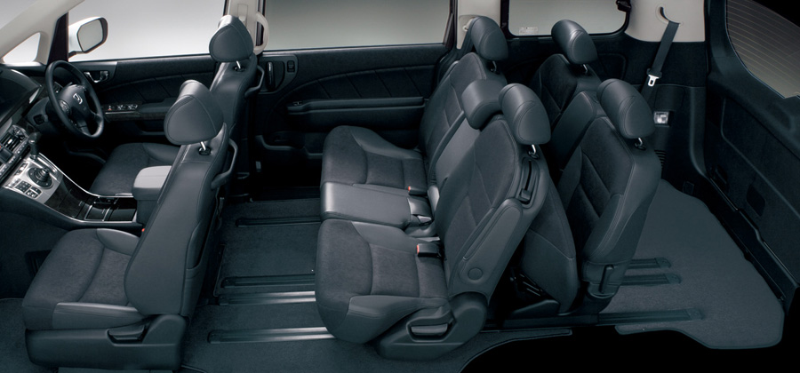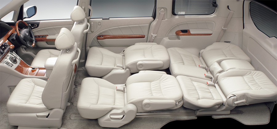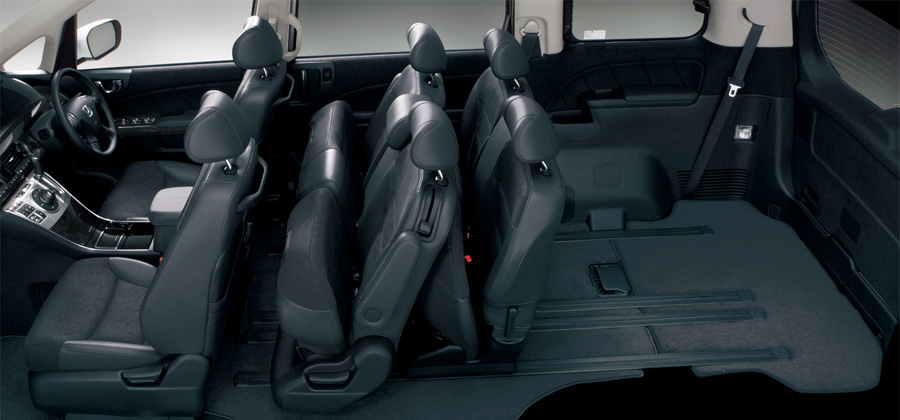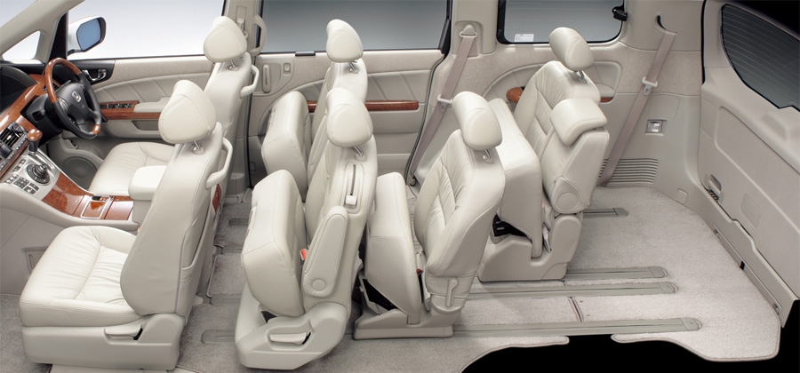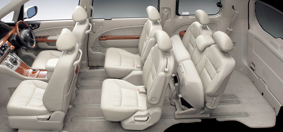 大いなるゆとりと、さらなる安らぎ。 2列目シートに、ゆったりと座れる両側アームレスト付のキャプテンシートを採用。十分な高さと幅を持つ広々としたキャビンスペースや前後に大きくスライドする左右独立式のスライド機構と相まって、ゆとりある贅沢な安らぎをお届けします。さらに、シート間のウォークスルーができ、3列目シートへのアプローチも快適です。 |