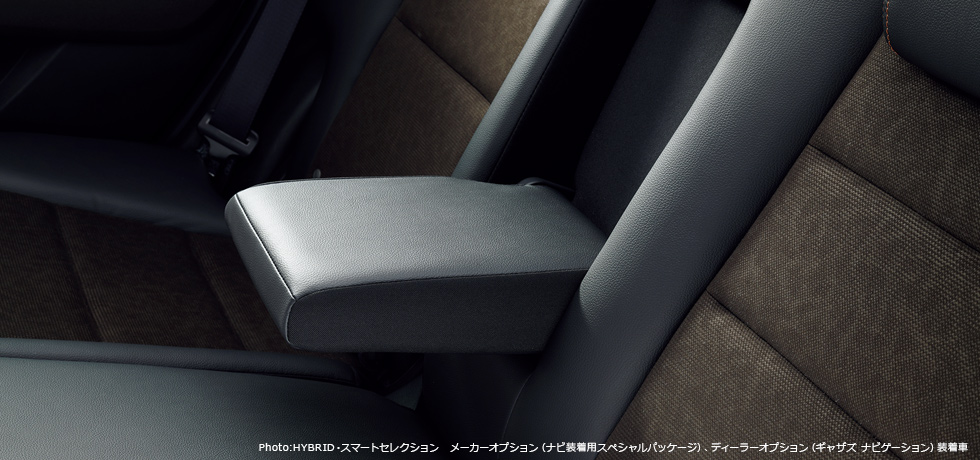 *各シートの座面および背もたれのサイド部分、ヘッドレスト前面、センターコンソールボックスリッド等にプライムスムースを使用。各シートの側面・背面、シートバックポケット等には別の合成皮革を使用しています。