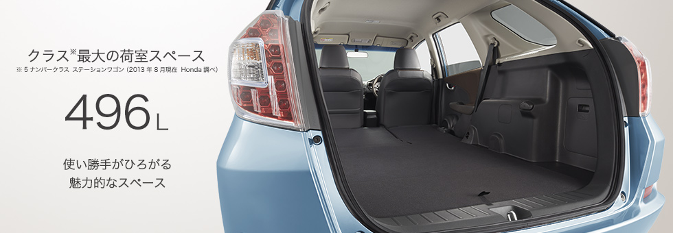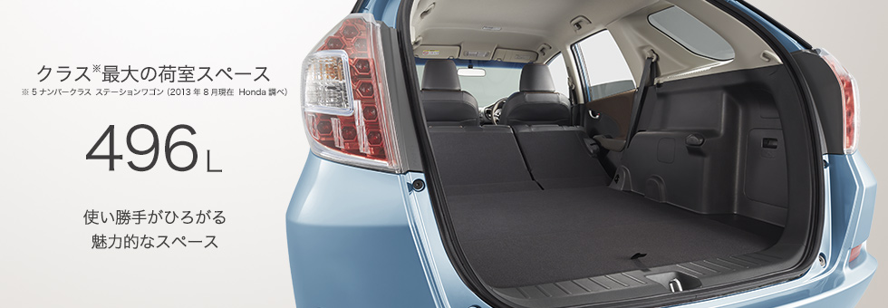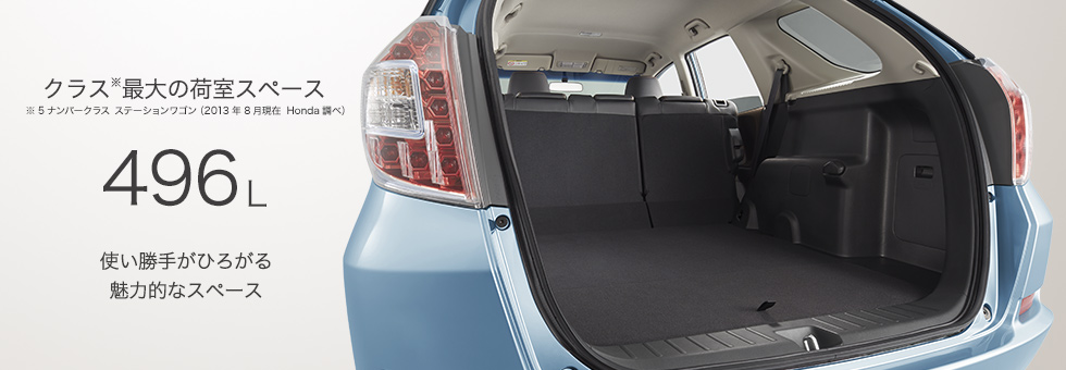 扱いやすい5ナンバーサイズのコンパクトボディの中に、ゆとりあふれる大空間。その魅力を生みだした秘密は、Hondaのパッケージング技術「センタータンクレイアウト」。通常は後席下にある燃料タンクを、前席下に移動することで、驚きの空間効率を実現しています。