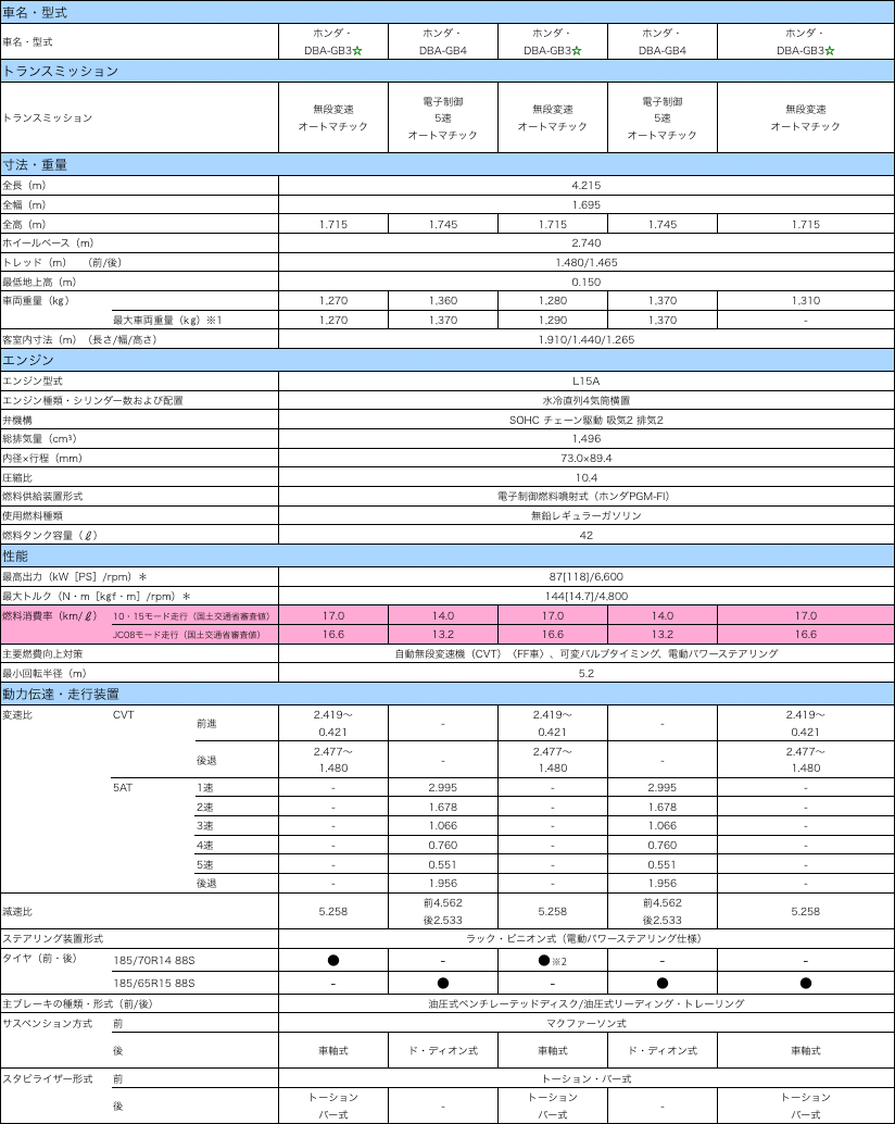 ※2:メーカーオプションの「15インチアルミホイール」を装着した場合、185/65R15 88Sとなります。