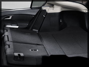 ムダのないスリムなボディながら、ゴルフバッグを2つ積んでも余裕のある荷室スペース。さらに、リアシートを倒せば大きくフラットな荷室スペースが出現。荷室の床の高さを2段階で調節できるフロアボードや、小さい物をしまっておけるフタつきのサブトランクなどの、細かい配慮も。