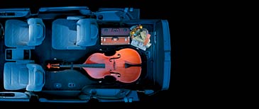 3列目シートを起こした状態でも、5個のゴルフバッグを立てたままで収納できます。スペアタイヤをフロア中央の床下に配置することで、充分なラゲッジスペースを確保しています。 |