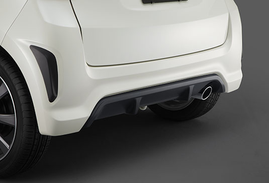 リアバンパーはディフューザー形状にすることで、ボディ下面の空気を整流し、走行時の安定感を向上させた。