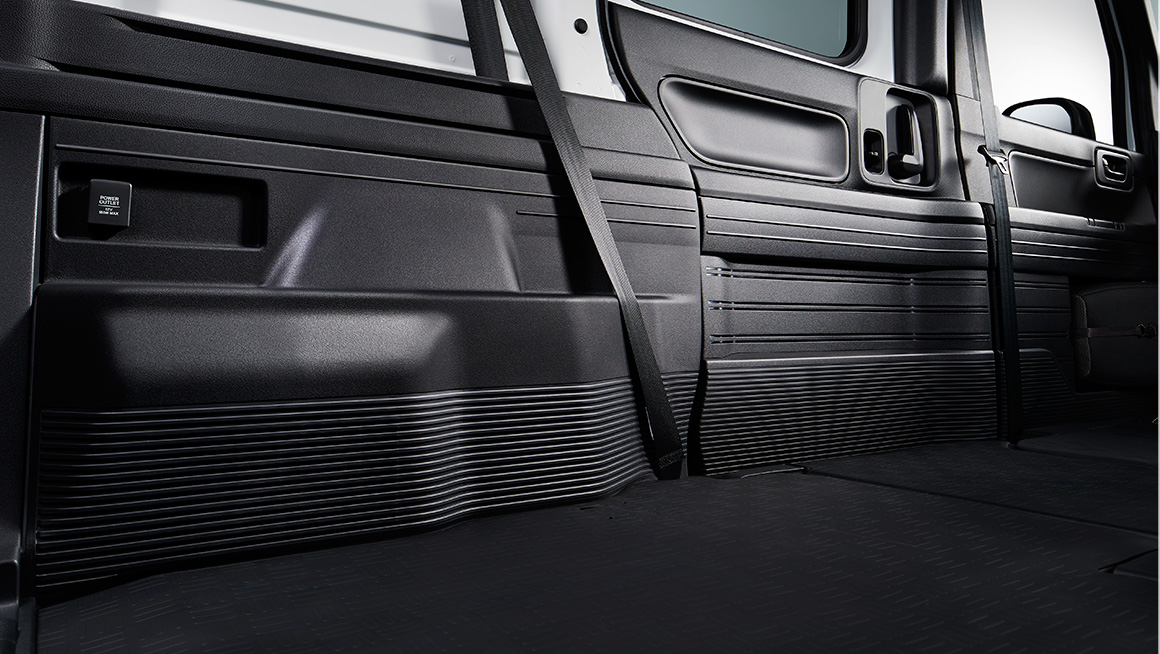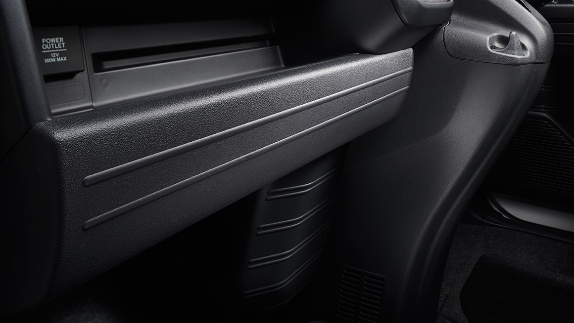 キズを目立ちにくくする、凹凸のある形状と粗目の表面仕上げを内装の下側に採用。