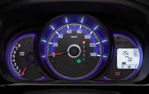 インパネ中央のスライドセンタートレイや足元などを淡く照らすバイオレットの照明。
