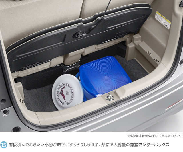 床下収納として大容量のスペース。普段から積んでおきたい小物は床下にしまっておけば、荷室はいつもすっきり。全面を広く使うことができます。
