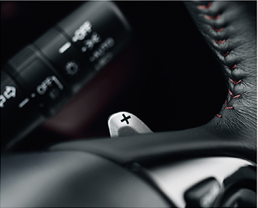 ステアリングのパドル( レバー)操作でシフトアップ/ダウンができる7速のパドルシフトを装備。マニュアル感覚でシフトチェンジが楽しめます。
