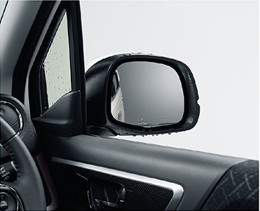 曇りや雨滴・雪を取り除くドアミラーと、雨粒をはじくフロントドアガラス。悪天候時の視界確保に役立ちます。(4WD車)