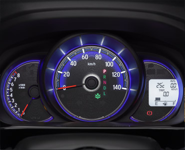 昼間でも見やすい常時点灯式。さらに、大径の正円デザインとし、文字表示も大きくすることで、読み取りやすさを高めました。また、盤面に光沢ミラーリングをあしらうなど、上質感も追求。