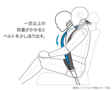 衝突時、乗員の身体をしっかりと固定した後、少しだけベルトを緩めて胸への衝撃をやわらげるロードリミッター機構を、前席に加え、軽で初めて※後席シートベルトにも採用。