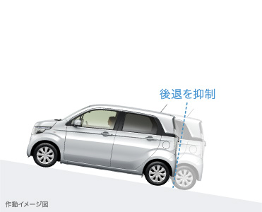坂道発進時、ペダルを踏みかえる瞬間のクルマの後退を抑制します(約1秒間)。傾斜のきつい坂でも作動し、高い安心感を生みます。