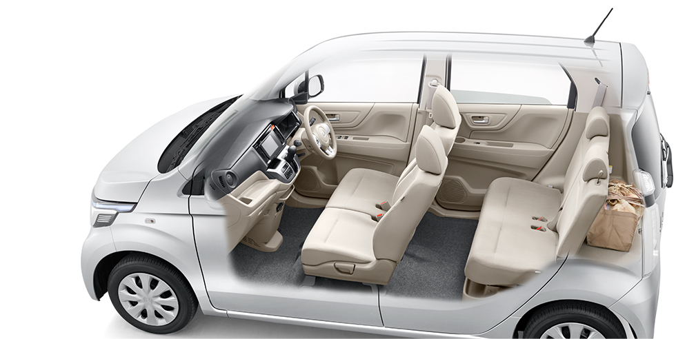 「軽」サイズの中で、大人4人がくつろげる空間と