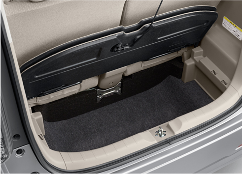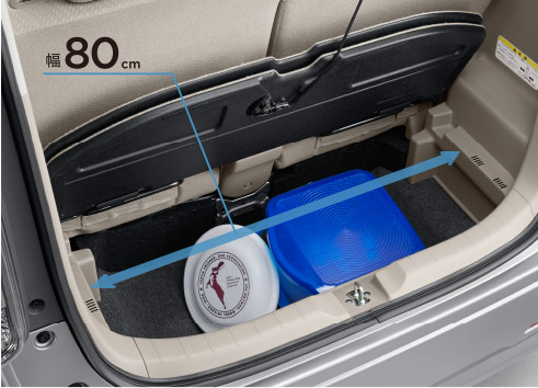 床下収納として大容量のスペース。普段から積んでおきたい小物は床下にしまっておけば、荷室はいつもすっきり。全面を広く使うことができます。