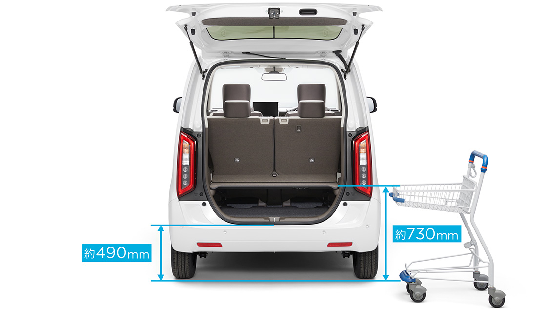 ボードの地上高は、ショッピングカートの上段の高さとほぼ同じ。カートから荷室へ、荷物の移し替えがラクにできます。