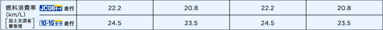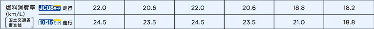 ■燃料消費率は定められた試験条件での値です。お客様の使用環境(気象、渋滞等)や運転方法(急発進、エアコン使用等)に応じて燃料消費率は異なります。なお、JC08モード走行は10・15モード走行に比べ、より実際の走行に近くなるよう新たに設けられた試験方法で、一般的に燃料消費率はやや低い値になります。