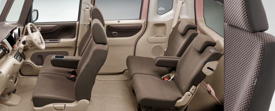 体重が軽い人でも適度に沈み込み、姿勢が安定することで疲れが軽減するように、また、体重のある人には柔らかすぎないようにするために、クッションの弾力性を工夫。さらに、シート表皮の裏側に特殊な加工を施し、じんわりとカラダを包み込む「低反発な柔らかさ」を追求しました。シート骨格には、ミドルクラスのセダンと同等サイズのものを採用しています。