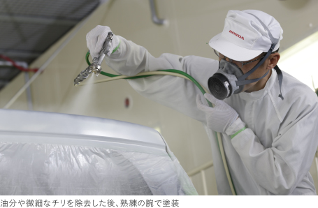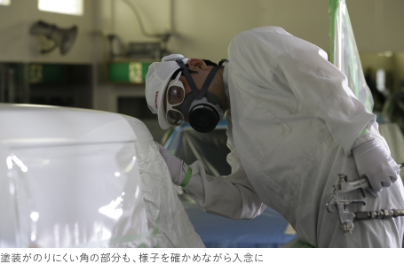 塗装の高技能者が丹精を込めてルーフを手塗り。細部まで丁寧な