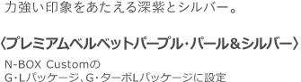 ■〈プレミアムホワイト・パールU&ブラック〉、〈プレミアムベルベットパープル・パール&シルバー〉は