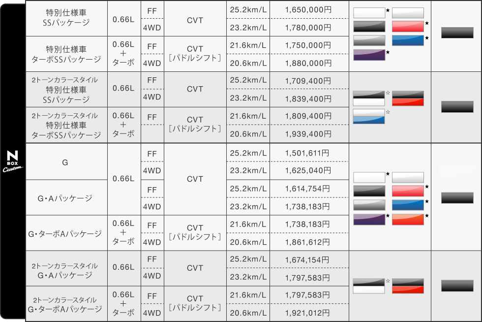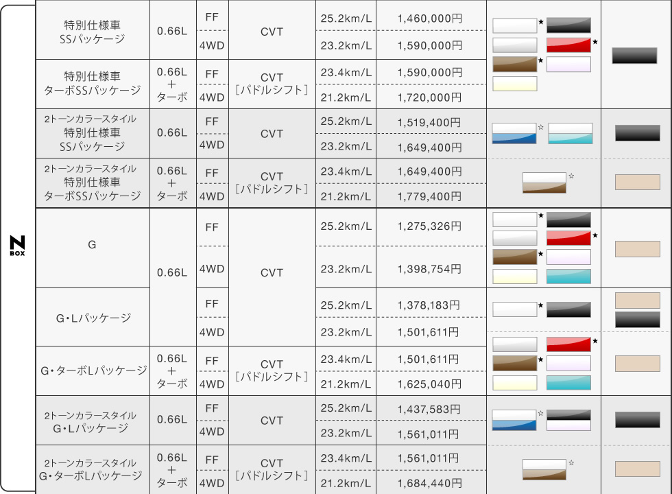 ★印のボディカラーは21,600円(消費税抜き 20,000円)高となり、表示価格には含まれておりません。