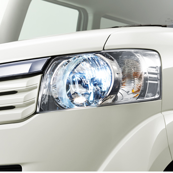 より遠くまで明るく照らし、夜間や雨天時の安心感を大きく向上。通常のヘッドライトより大光量ながら、省電力にも貢献します。照射軸の上下方向を自動調整するオートレベリング機構、点灯忘れも防止できるオートライトコントロール機構付。