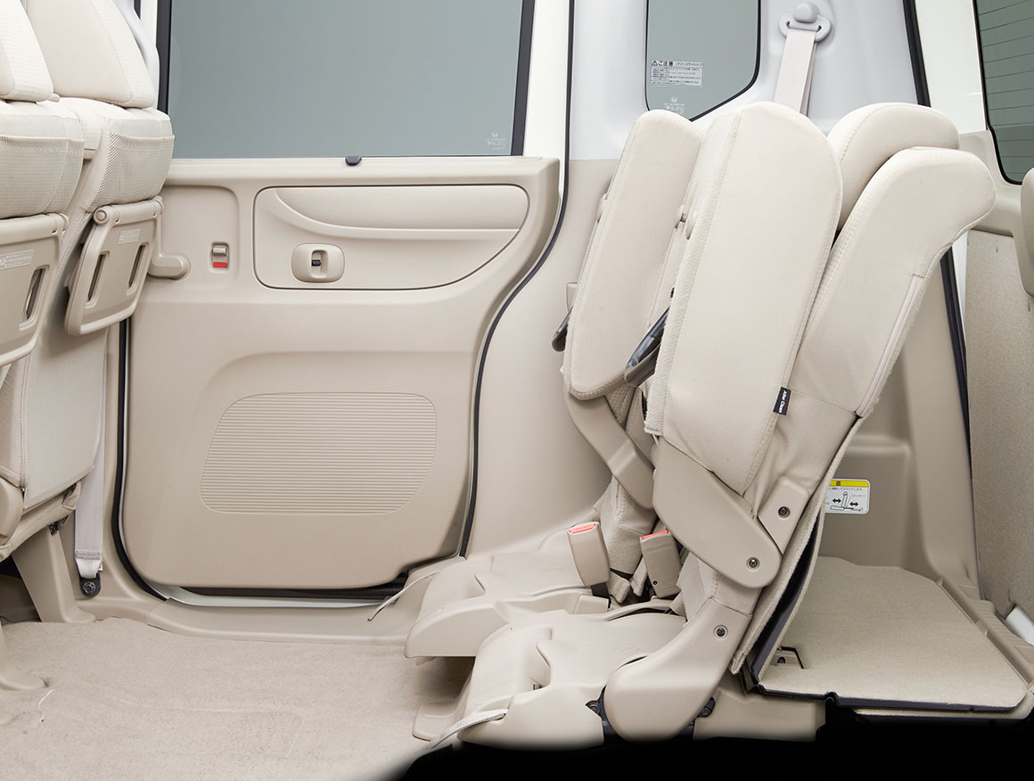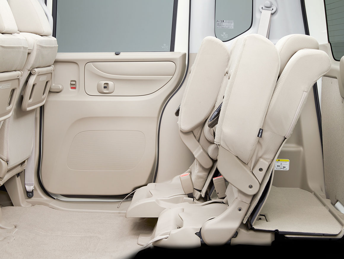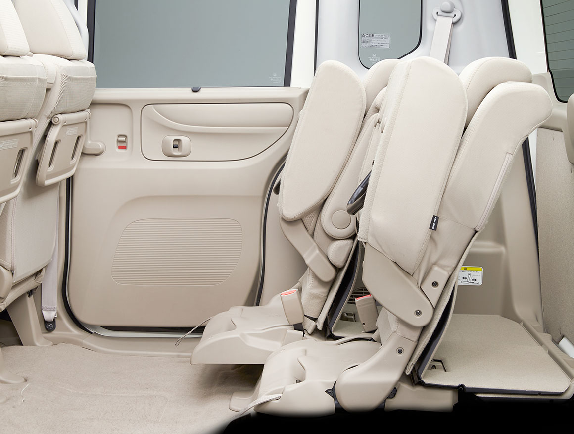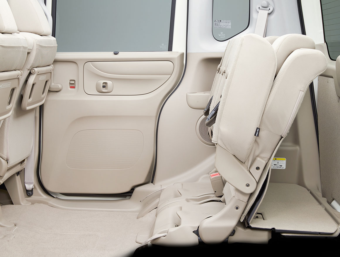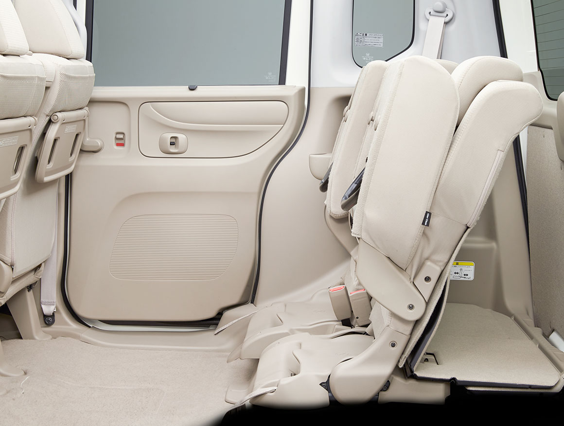 後席を前にスライドすれば、前席に座ったままでも後席に座るお子様とのやりとりが簡単に。便利さをまたひとつ広げました。