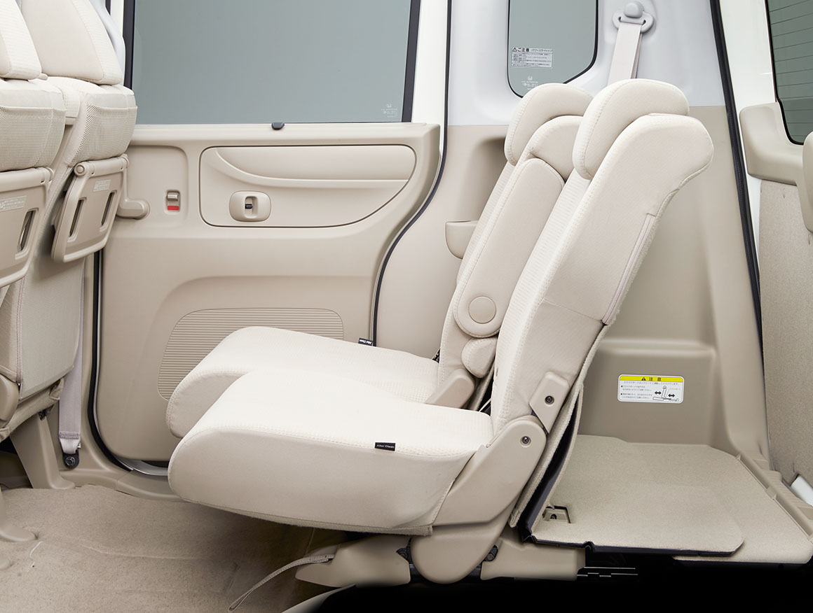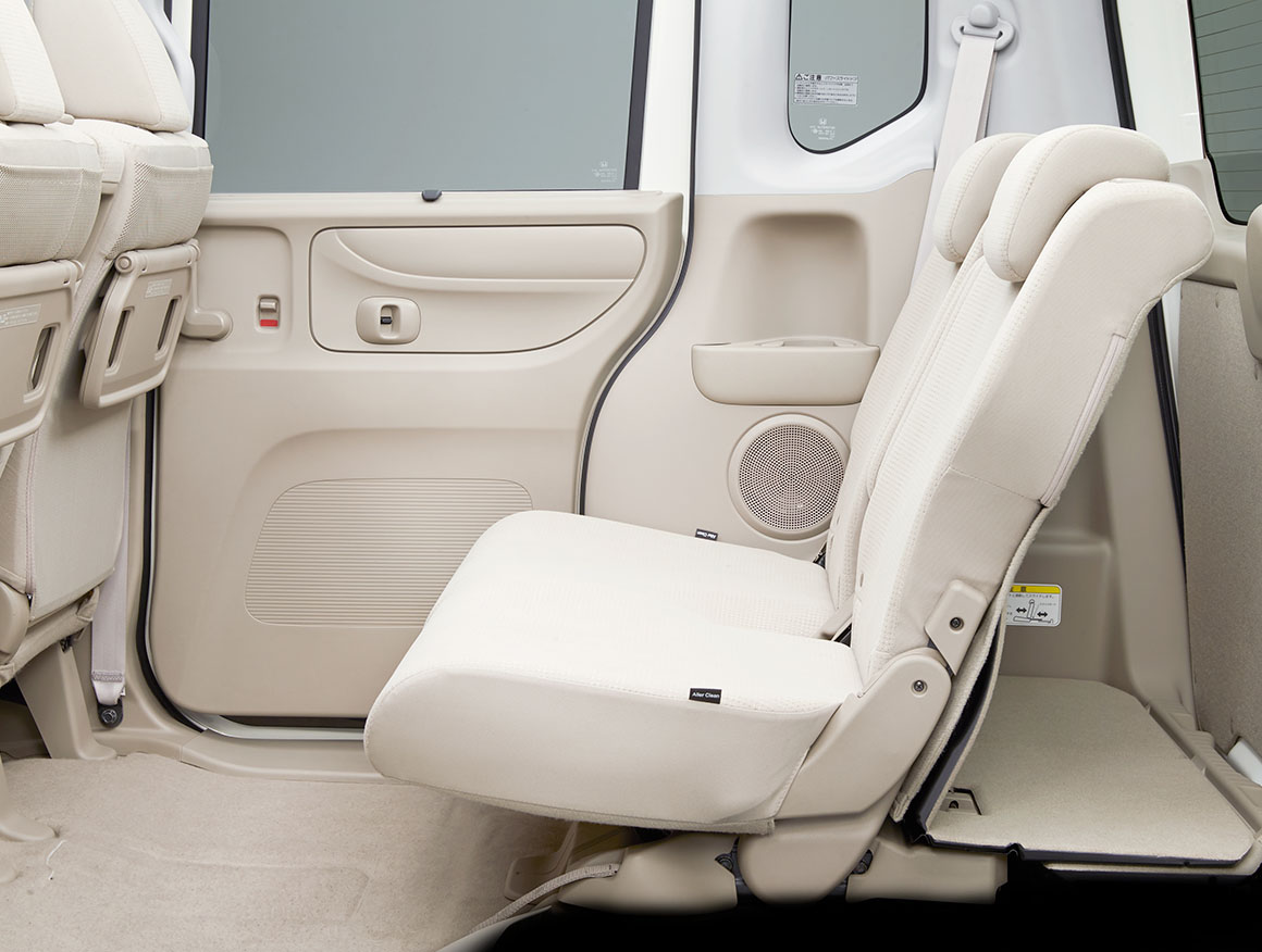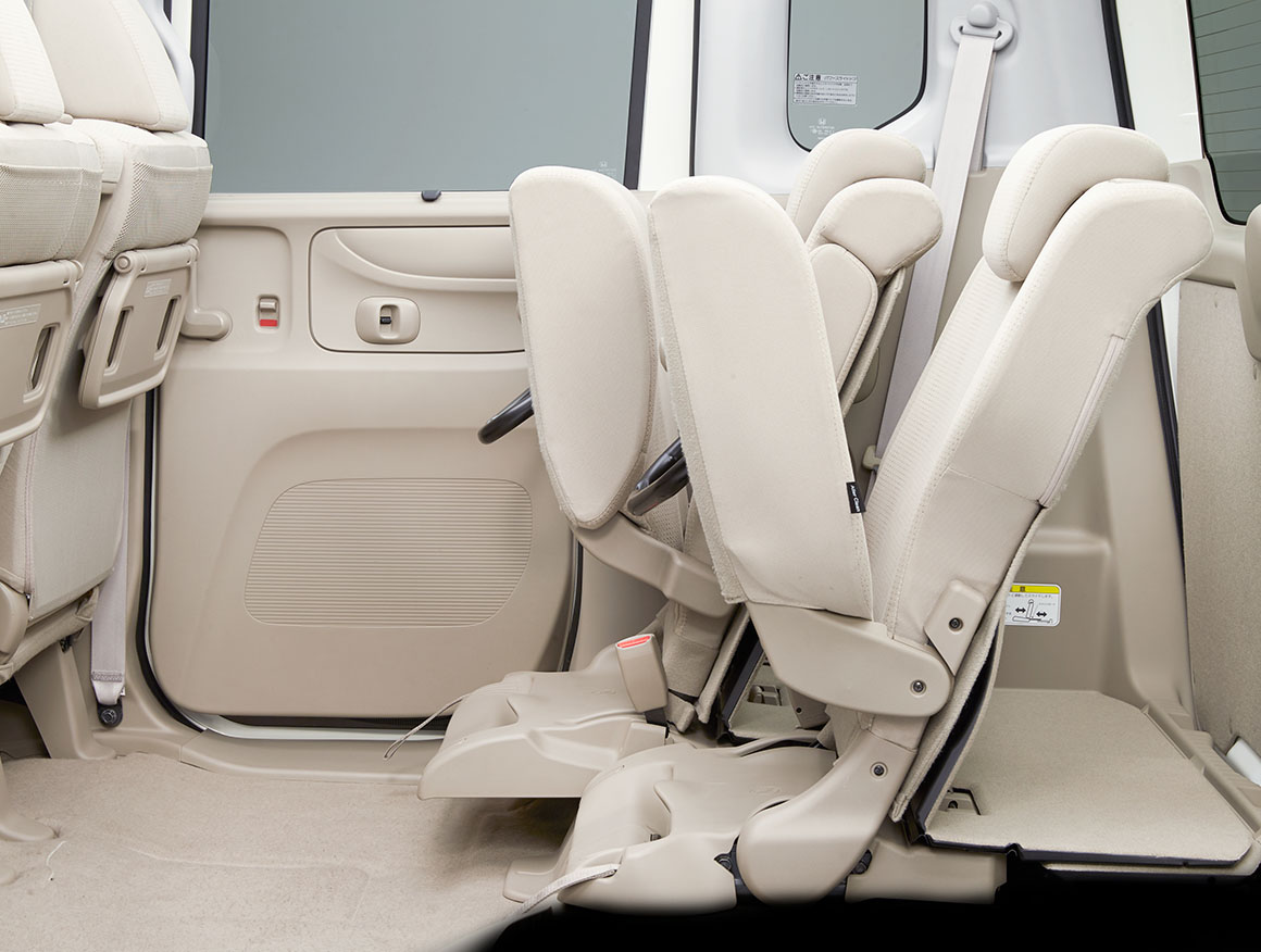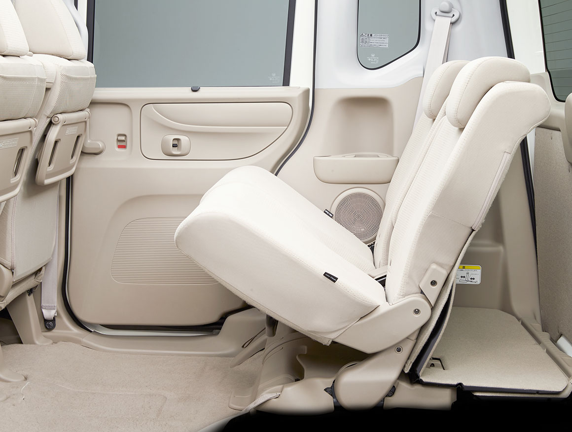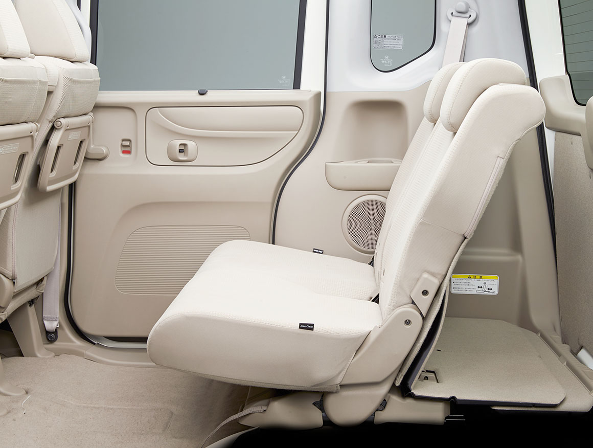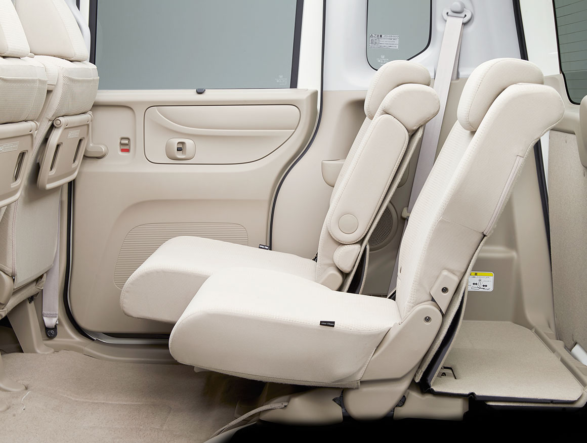 後席を前にスライドすれば、前席に座ったままでも後席に座るお子様とのやりとりが簡単に。便利さをまたひとつ広げました。