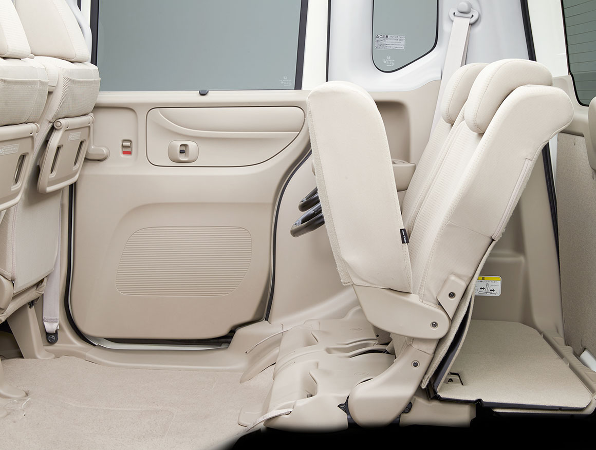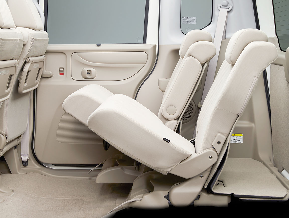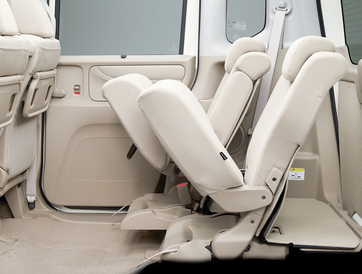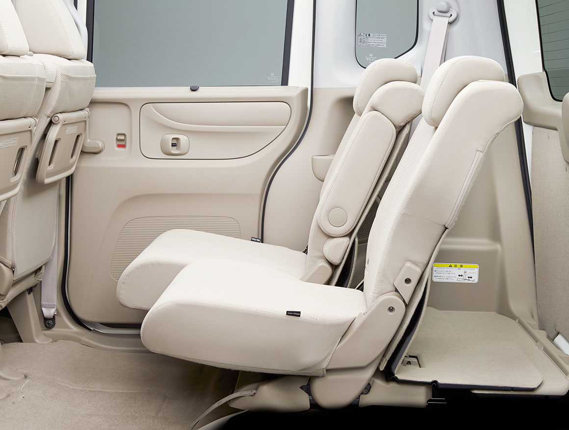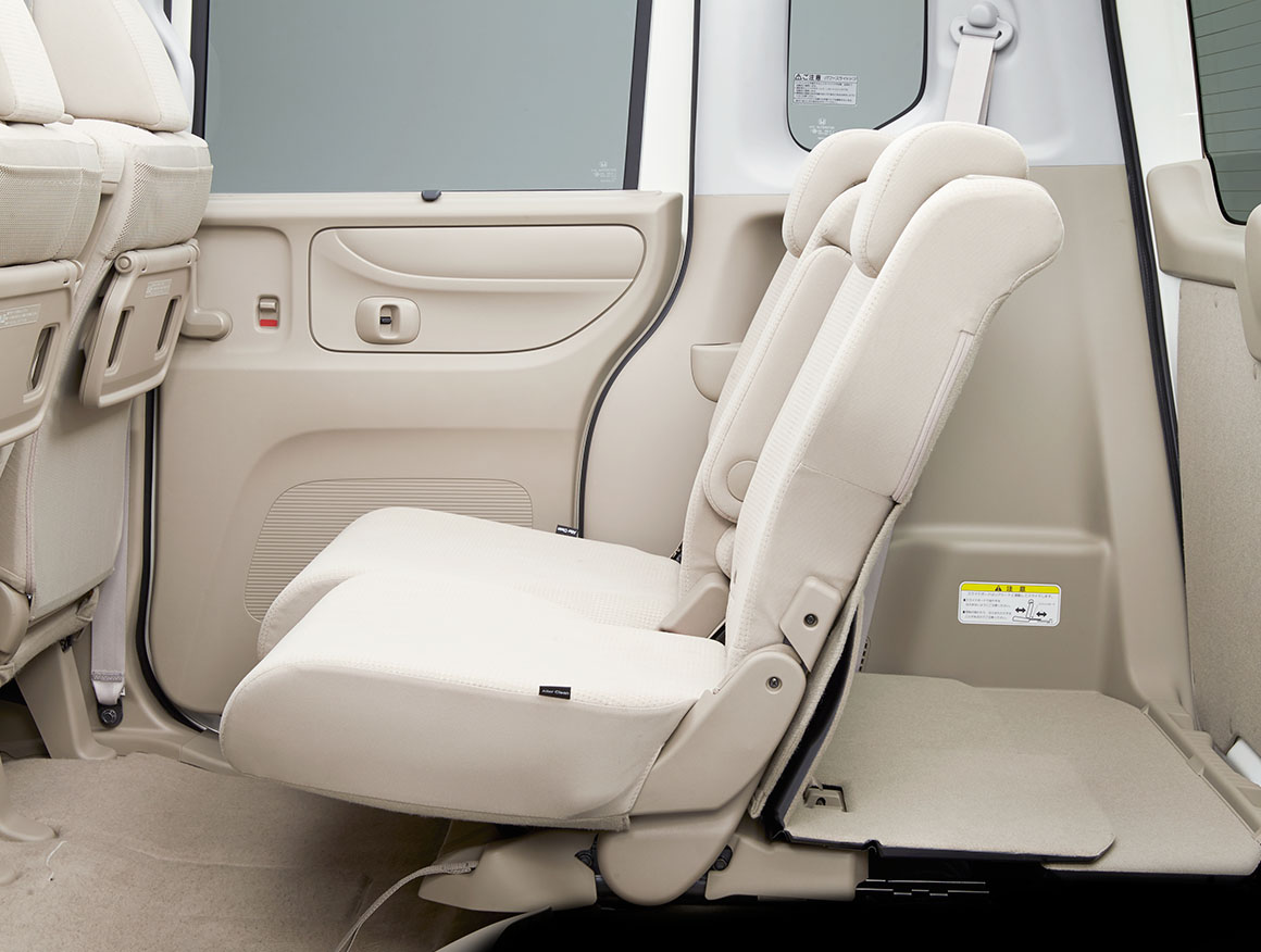 後席を前にスライドすれば、前席に座ったままでも後席に座るお子様とのやりとりが簡単に。便利さをまたひとつ広げました。