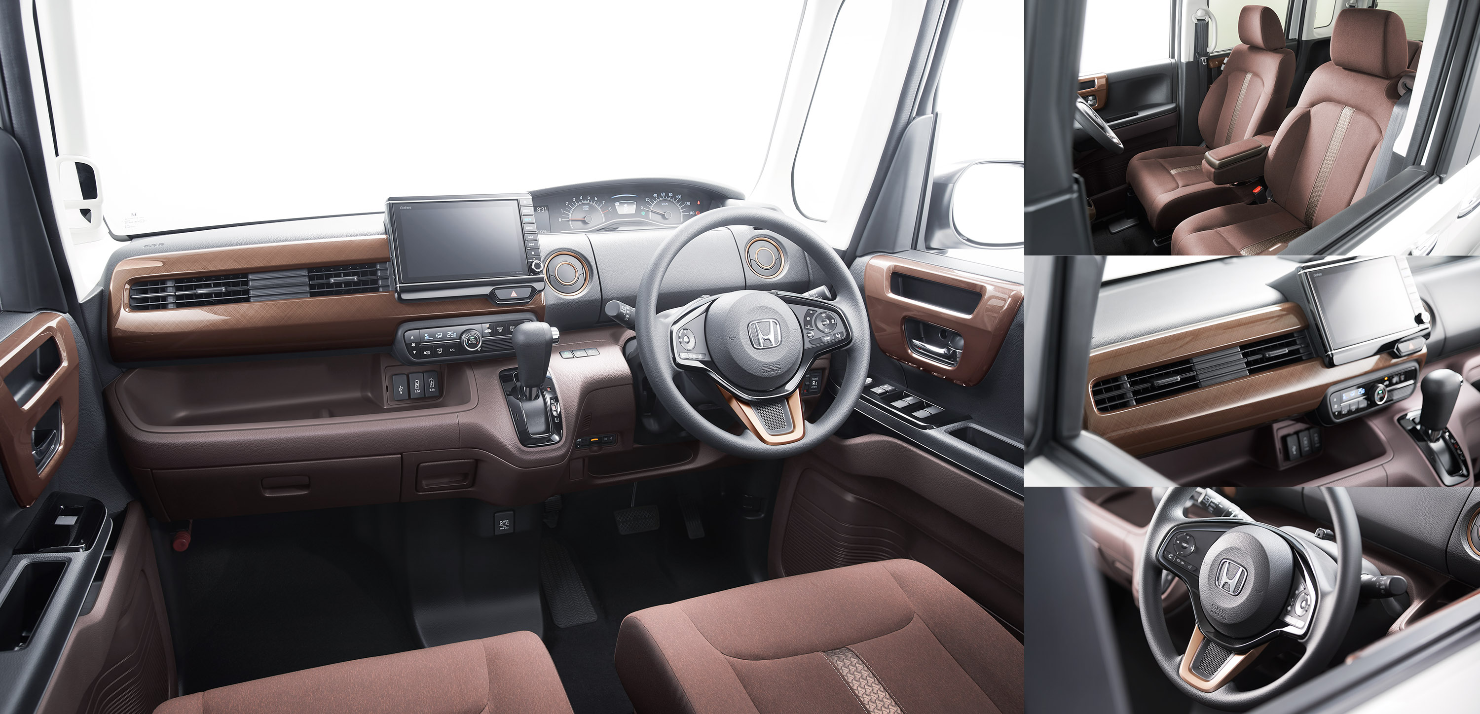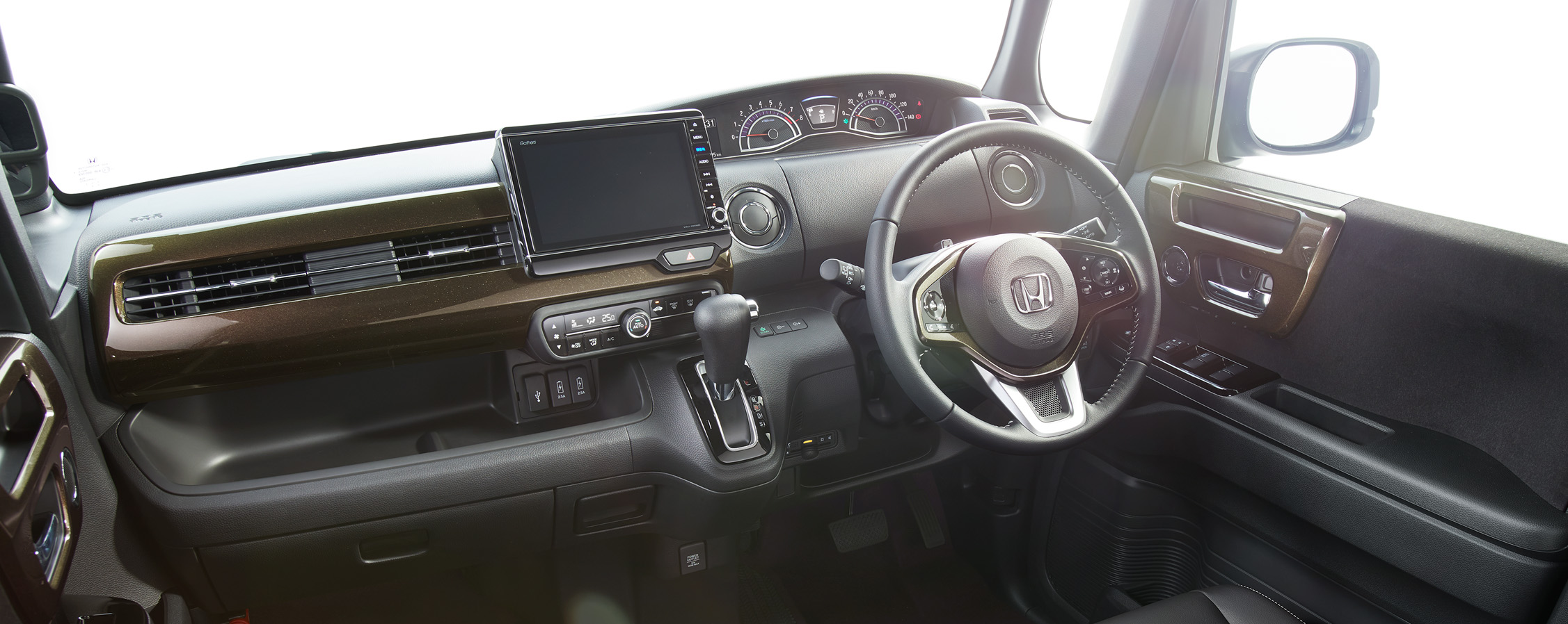 N-BOX Customでは“洗練された大人の感性”に響く空間をテーマに車内をデザイン。