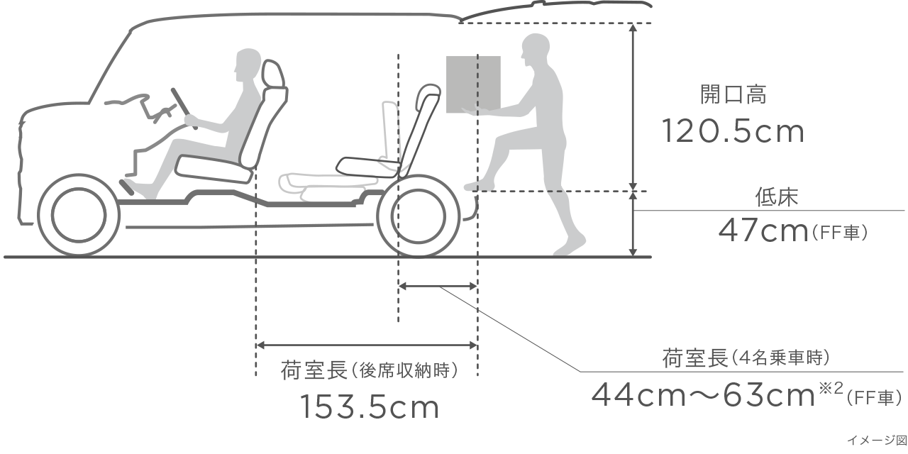 ※1 自転車やベビーカー等のサイズ・形状によっては積めない場合があります。