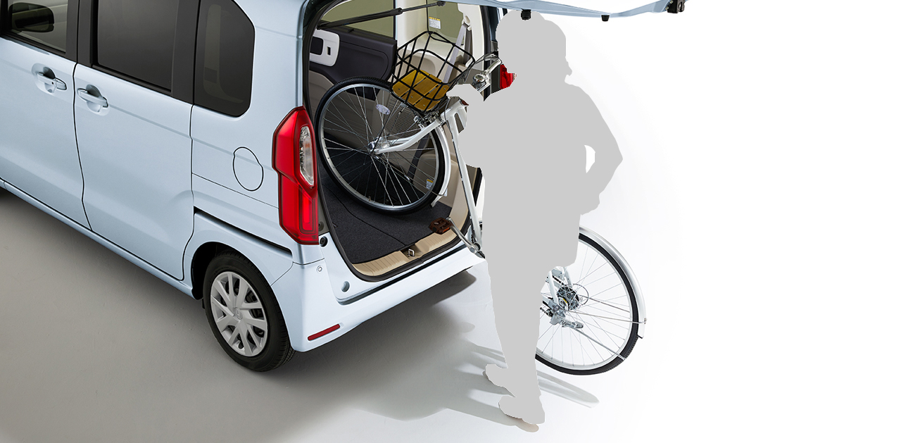 後席下に燃料タンクがない独自設計ならではの低い床、高い天井。自転車を積む時も高く持ち上げる必要はありません。