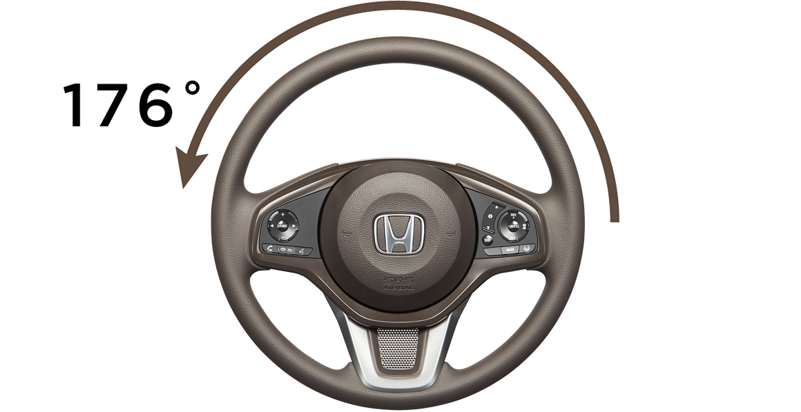 駐車時や交差点などを曲がる時、ステアリングの持ち替えが少なくて済むようにギアレシオを最適化。ステアリング操作が楽に行えます。