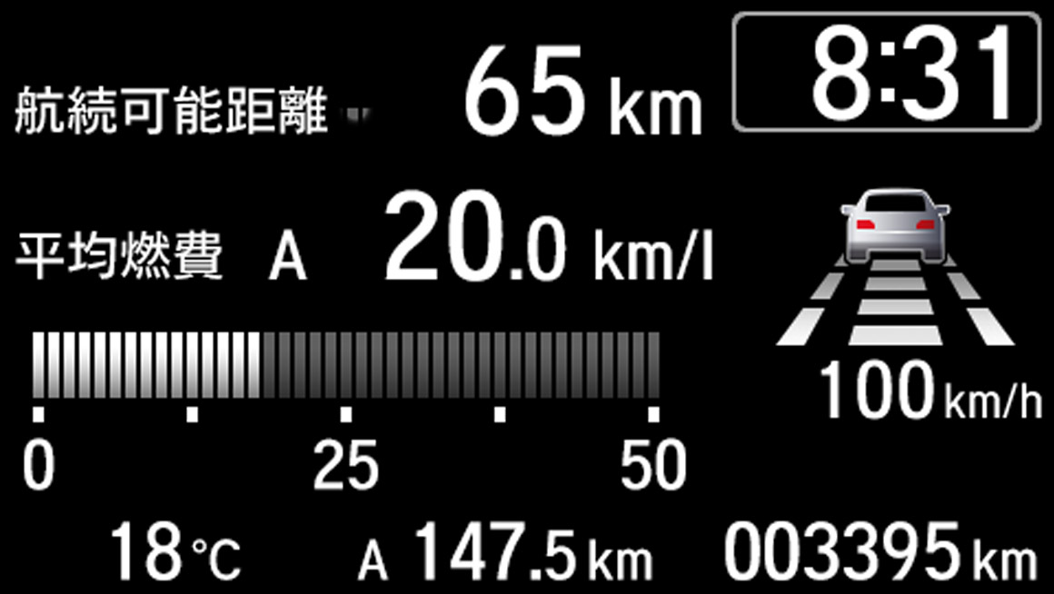 メーターパネル左端には4.2インチサイズの液晶カラーディスプレーを装備。燃費や航続可能距離といった運転をサポートする情報から、Honda SENSINGの注意・警告などをわかりやすい日本語で表示します。