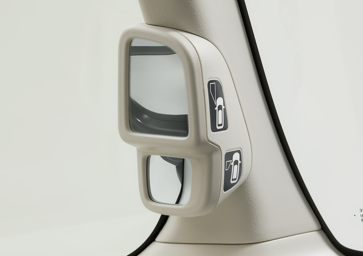 思い通りの場所にラクにピタリと停められるようにと採用した、死角を減らす「ピタ駐ミラー」。運転席に座った状態で死角になりやすい左側やクルマの後ろの様子まで確認でき、幅寄せや縦列駐車、車庫入れの際に役立ちます。