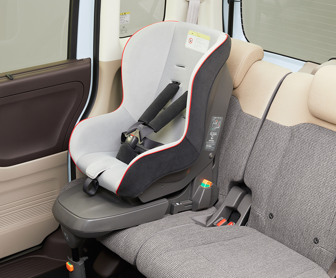 衝突時、チャイルドシートの前方への移動を効果的に抑制するために。汎用型ISOFIXチャイルドシートを確実・容易に装着できる固定金具(アンカレッジ)をリア左右席にご用意しています。さらに、i-Sizeチャイルドシートにも対応。