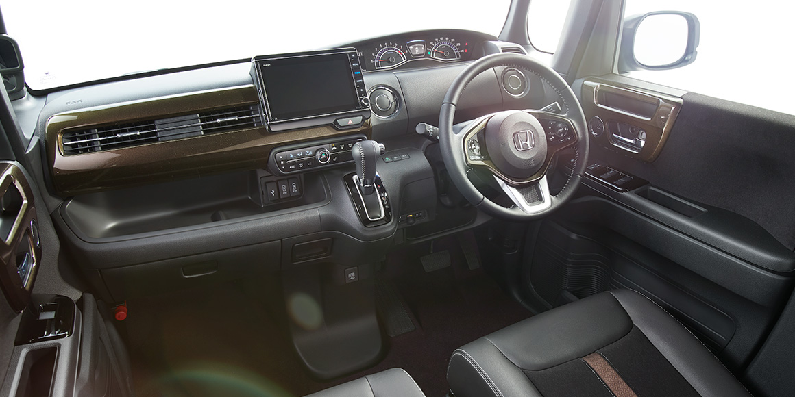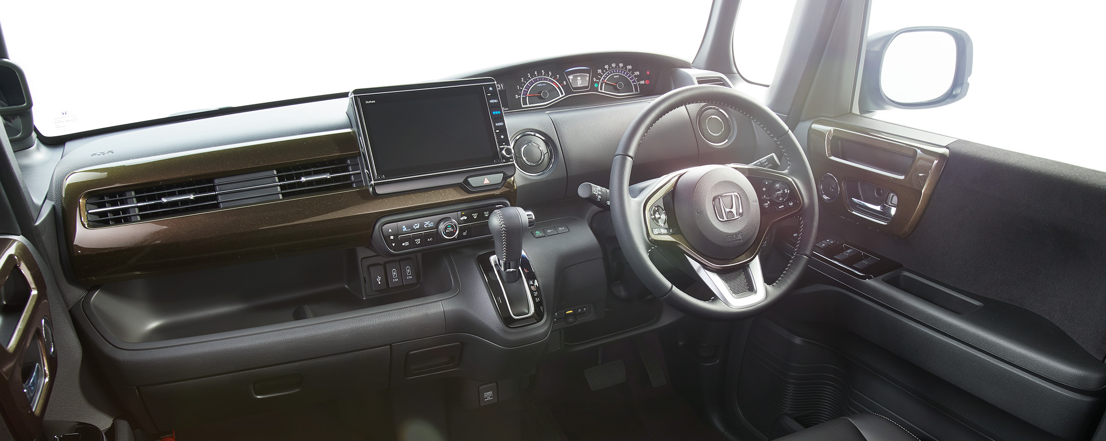 N-BOX Customでは“洗練された大人の感性”に響く空間をテーマに車内をデザイン。
