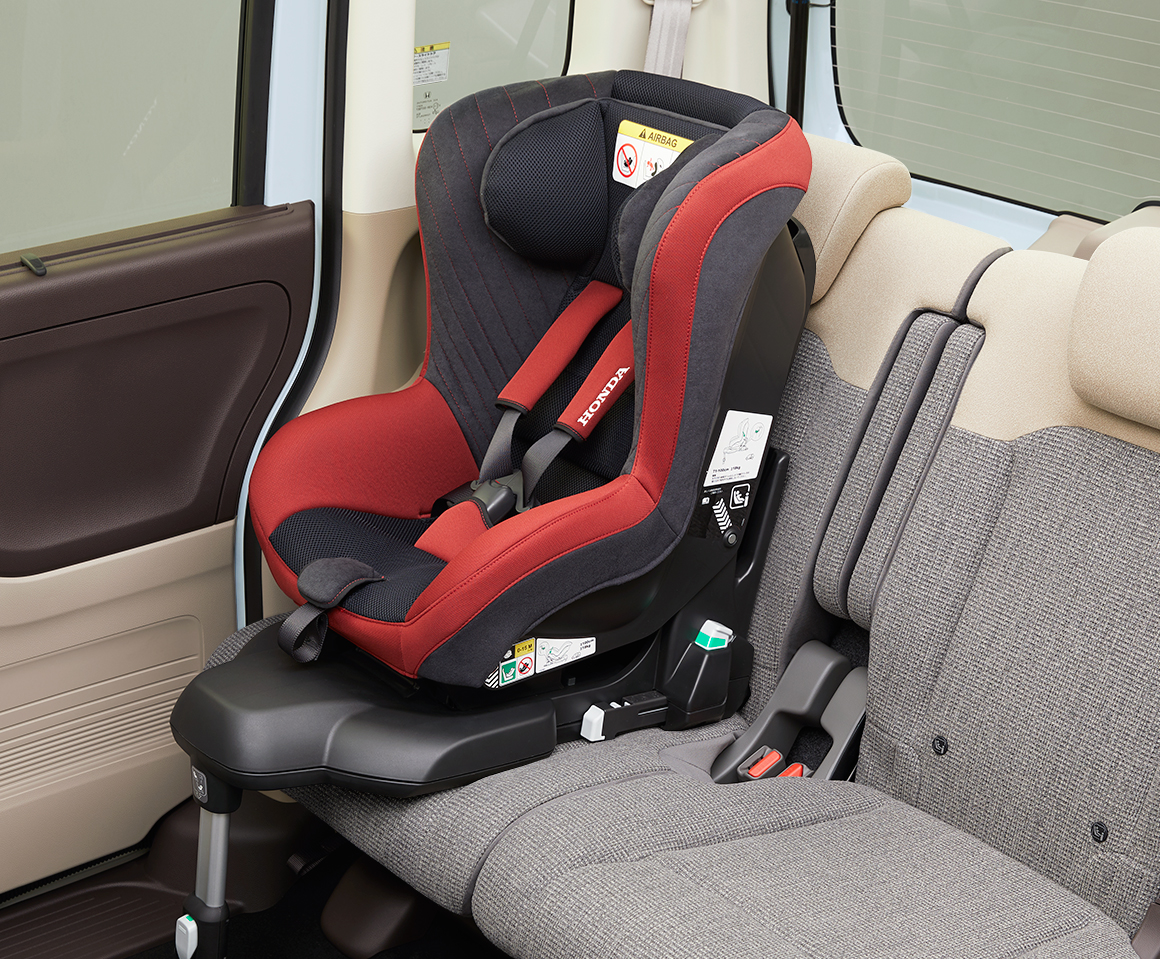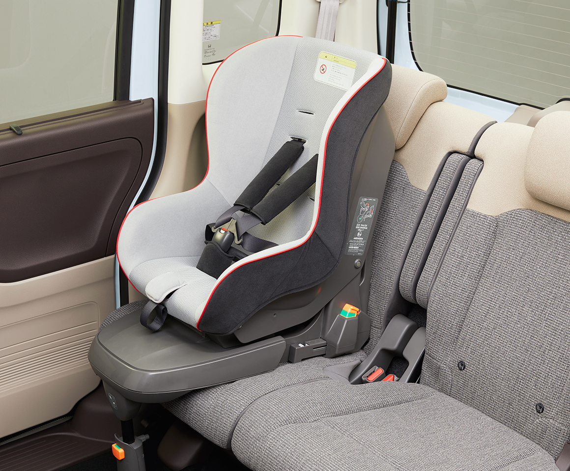 衝突時、チャイルドシートの前方への移動を効果的に抑制するために。汎用型ISOFIXチャイルドシートを確実・容易に装着できる固定金具(アンカレッジ)をリア左右席にご用意しています。さらに、i-Sizeチャイルドシートにも対応。