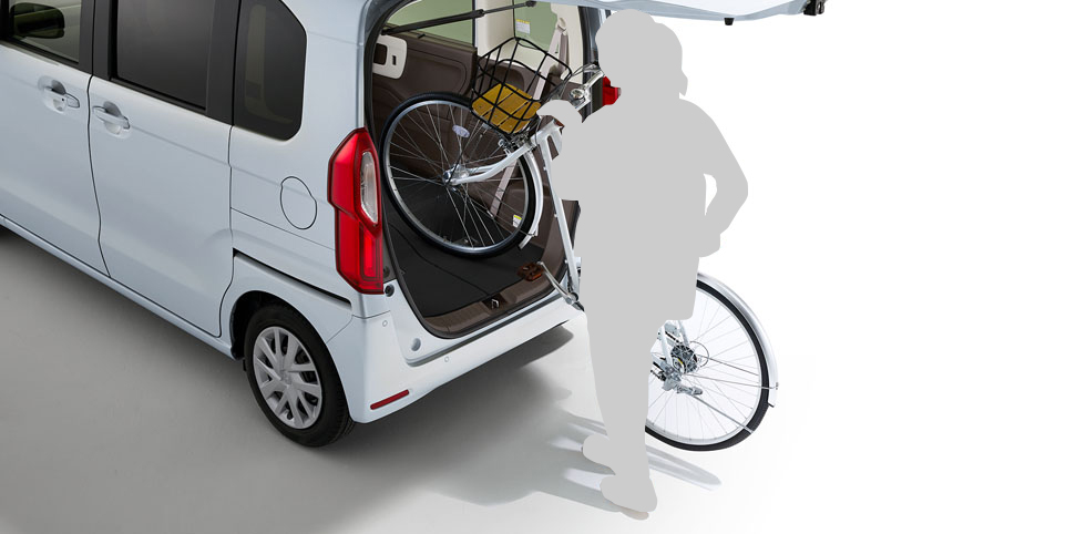 後席下に燃料タンクがない独自設計ならではの低い床、高い天井。自転車を積む時も高く持ち上げる必要はありません。