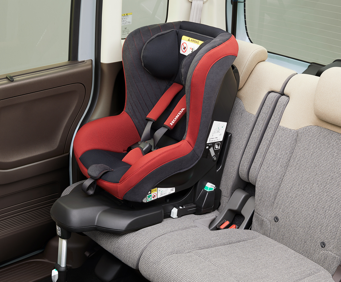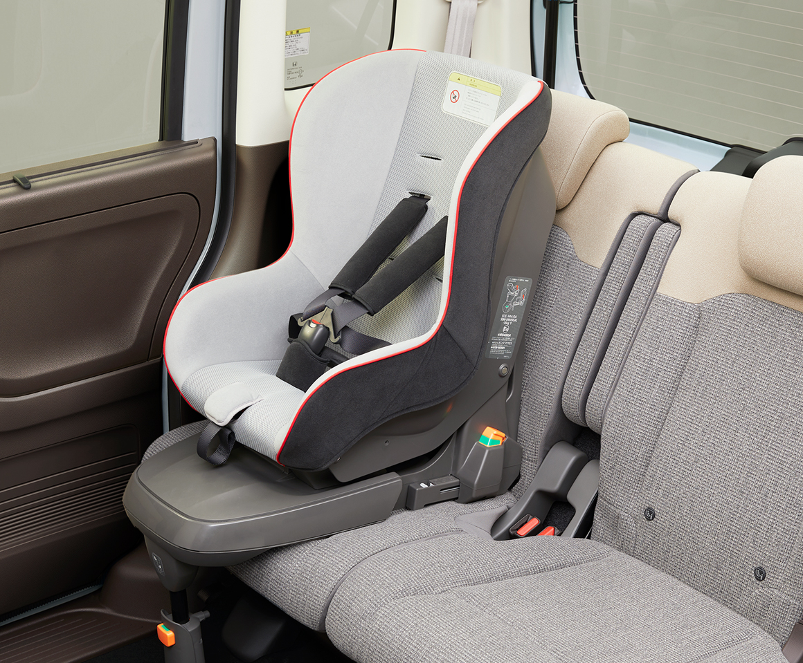 衝突時、チャイルドシートの前方への移動を効果的に抑制するために。汎用型ISOFIXチャイルドシートを確実・容易に装着できる取付金具をリア左右席にご用意しています。さらに、i-Sizeチャイルドシートにも対応。